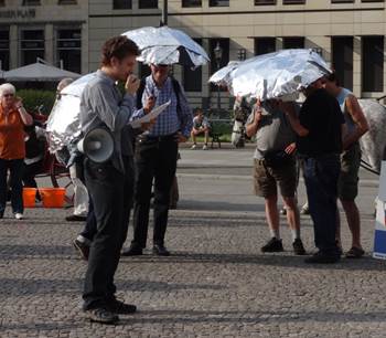 Wir wollen zeigen, dass unsere politischen Führer mit dem Feuer spielen und keine besseren Rezepte zu unserem Schutz haben, als unsere lächerlichen Schirme.