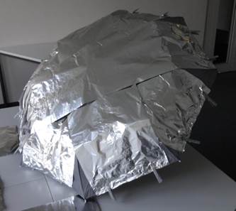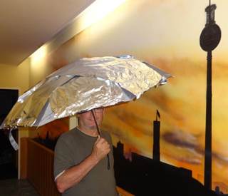 Bitte Regenschirme mitbringen – mit 4 Bahnen Alufolie, befestigt mit Wäscheklammern (wir haben Alu Folie)